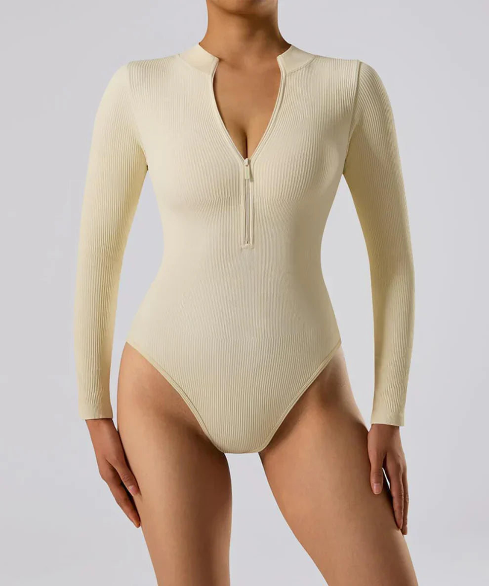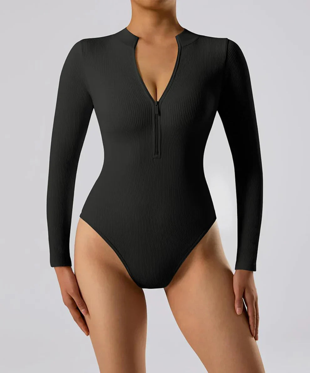 "Avec son dรฉcolletรฉ en V flatteur et sa ceinture gainante, cette combinaison sculpte une silhouette en sablier. Son design sans coutures assure une finition lisse, sans marques โ pour une allure impeccable et en confiance.