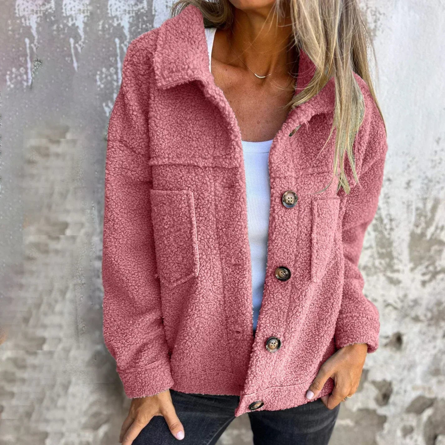 Cette veste en sherpa boutonnรฉeย est unย parfait mรฉlange de chaleur, deย confortย et deย style.ย Fabriquรฉe en tissu sherpa doux et moelleux, elle offre uneย couche chaleureuseย pour les jours frais tout en restantย tendance. Avec saย coupe ampleย et saย fermeture boutonnรฉe, cette veste ajoute uneย touche chicย etย polyvalenteย ร nโimporte quelle tenue. Elle est disponible dans uneย variรฉtรฉ de couleurs attrayantes, y compris leย noir classique, leย rose pastel, leย vert saugeย et leย jaune moutarde, vous permettant de choisir celle qui convient le mieux ร ย votre style.