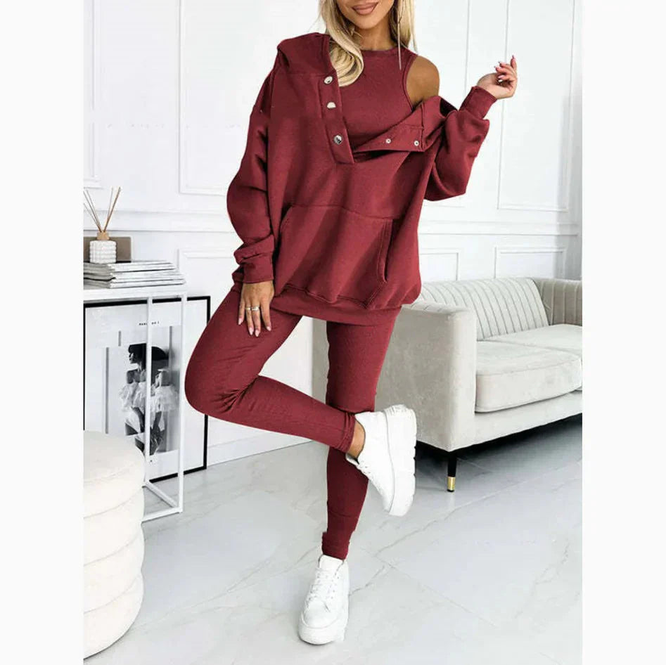 Transformez votre look en un clin d'ลil avec ce trio incontournable : sweat ร capuche, haut sans manches et jogging. Portez-le ensemble ou mixez-le pour un style unique. Confort et mode, sans compromis !