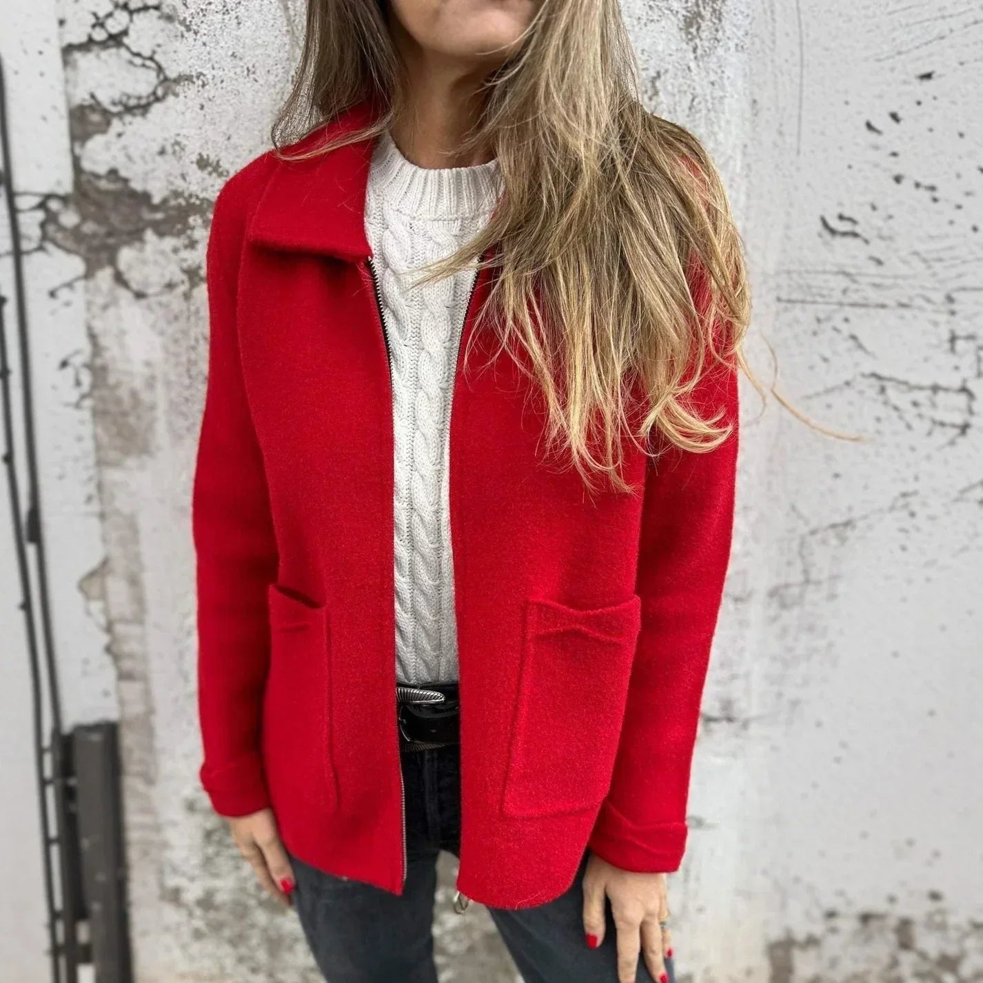 ๐นย Styleย : Manches longues, col chรขle, fermeture zippรฉe, poches plaquรฉes